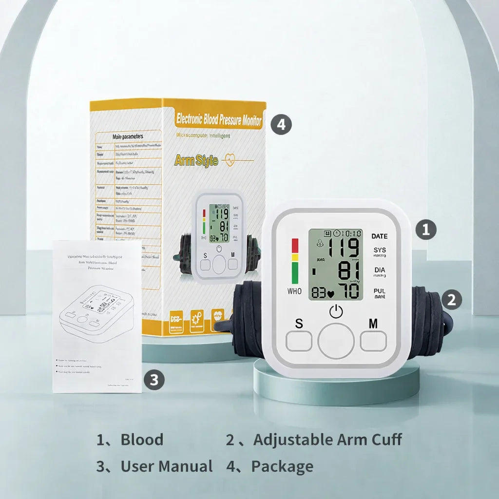 Tensiometru Electronic de Braț Automat, Afișaj LCD, Măsurare Puls și Aritmie