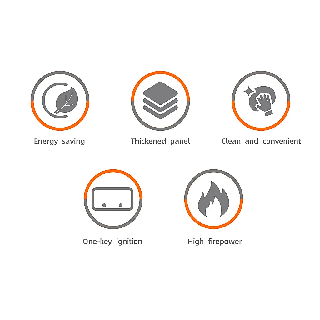 • Control simplu al flăcării prin butoane ergonomice