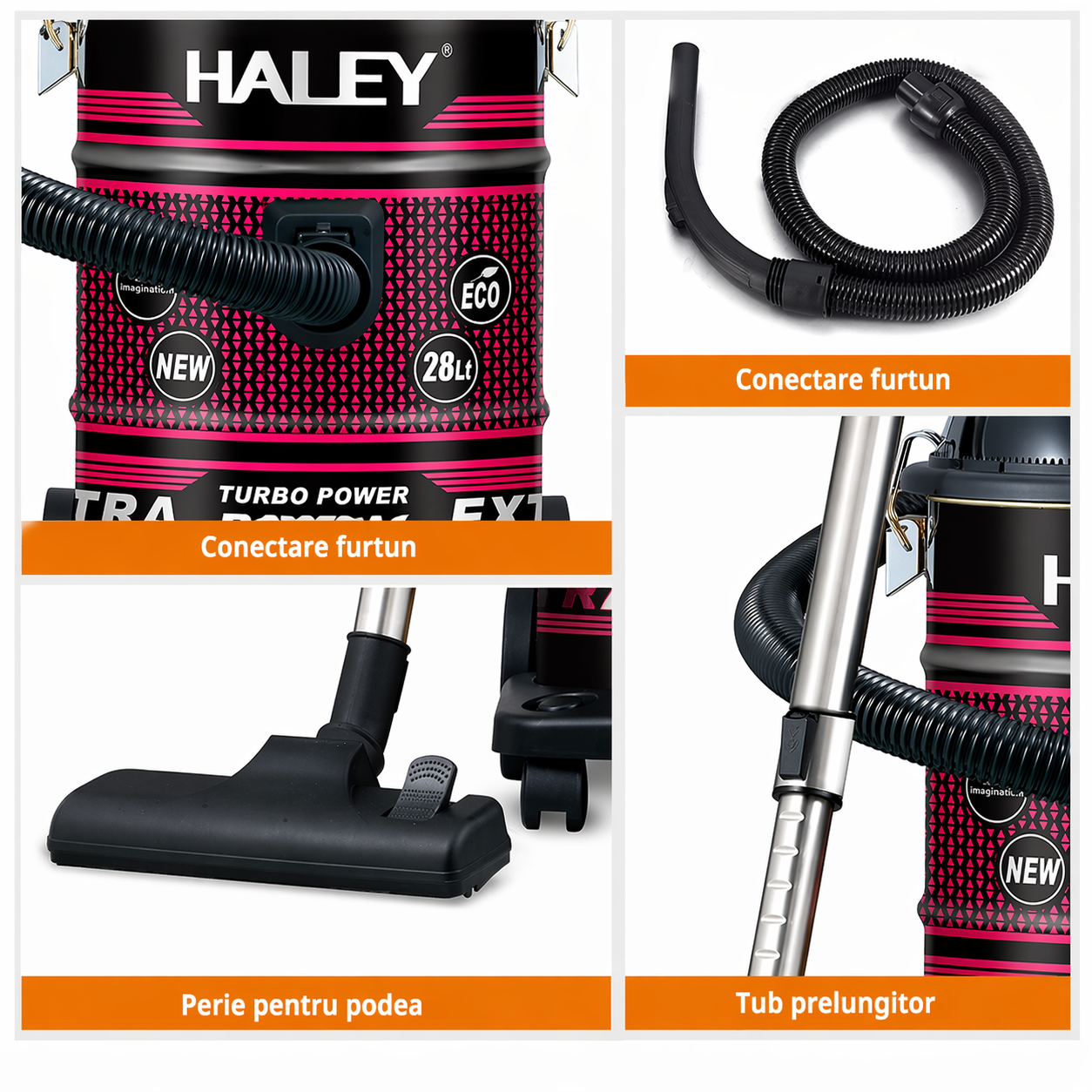 Set complet de accesorii pentru diferite tipuri de suprafețe (pardoseli, colțuri, tapițerie).