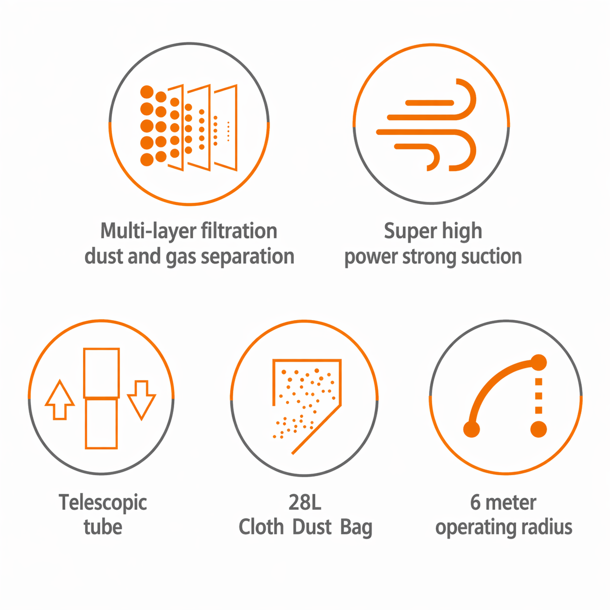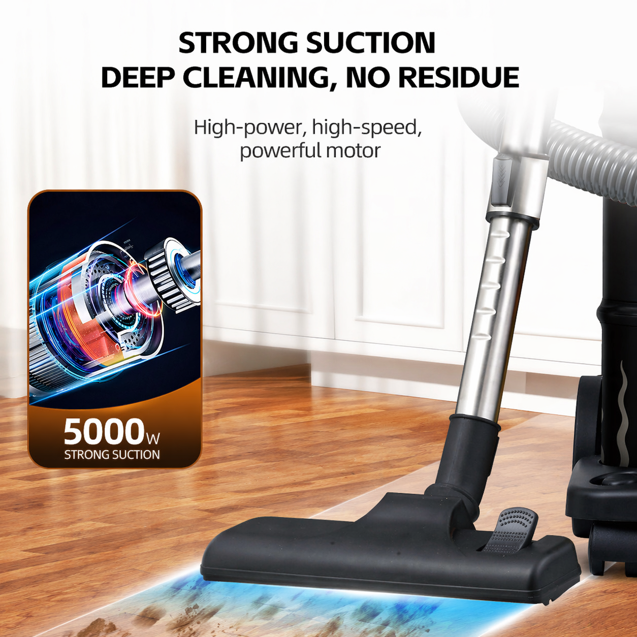Cu o putere maximă de 5000W și o forță de aspirare de peste 500W, acest aspirator îndepărtează rapid murdăria, praful și resturile de pe diverse suprafețe.