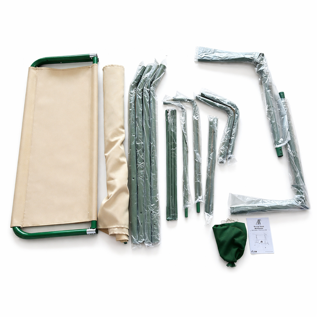 Structura este realizată din țeavă de oțel rezistentă, oferind stabilitate și durabilitate în timp: