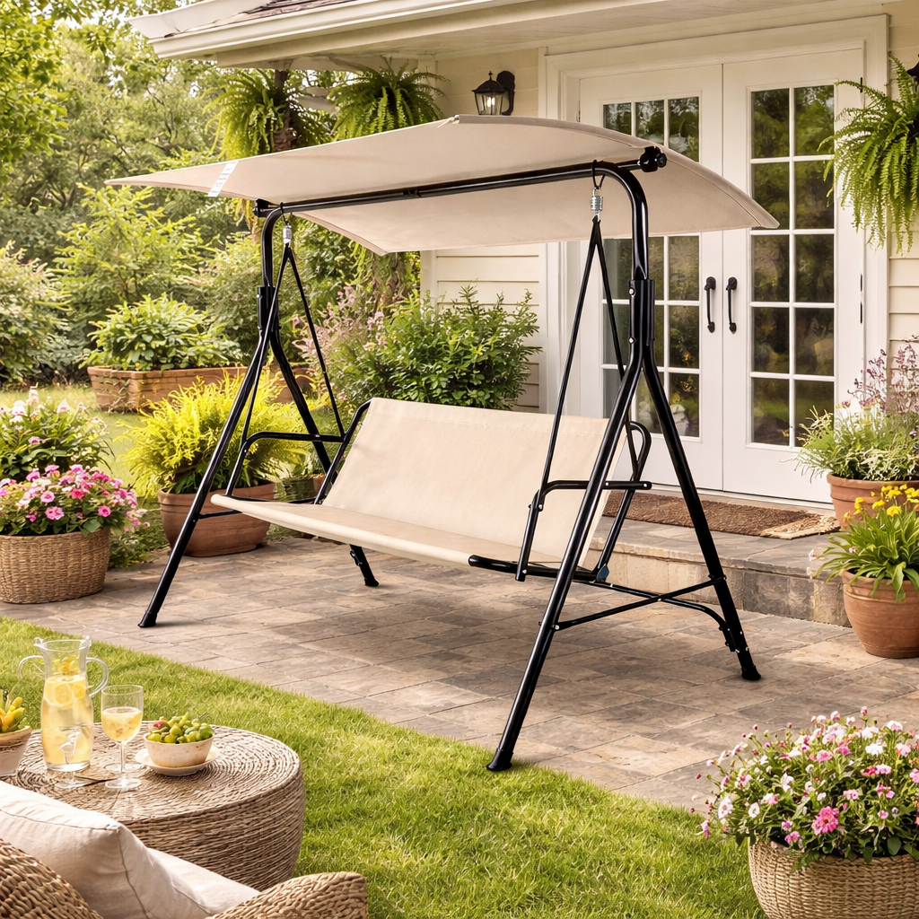 Leagănul oferă un spațiu generos pentru până la 3 persoane, fiind perfect pentru relaxare, citit sau petrecut timp de calitate alături de cei dragi.