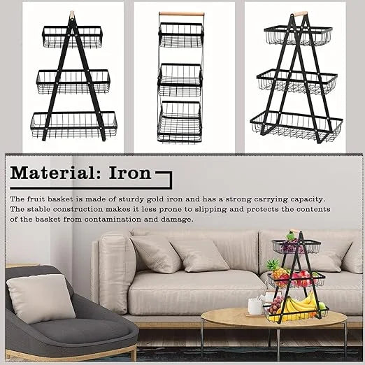 Coș cu trei niveluri pentru depozitarea fructelor și legumelor.