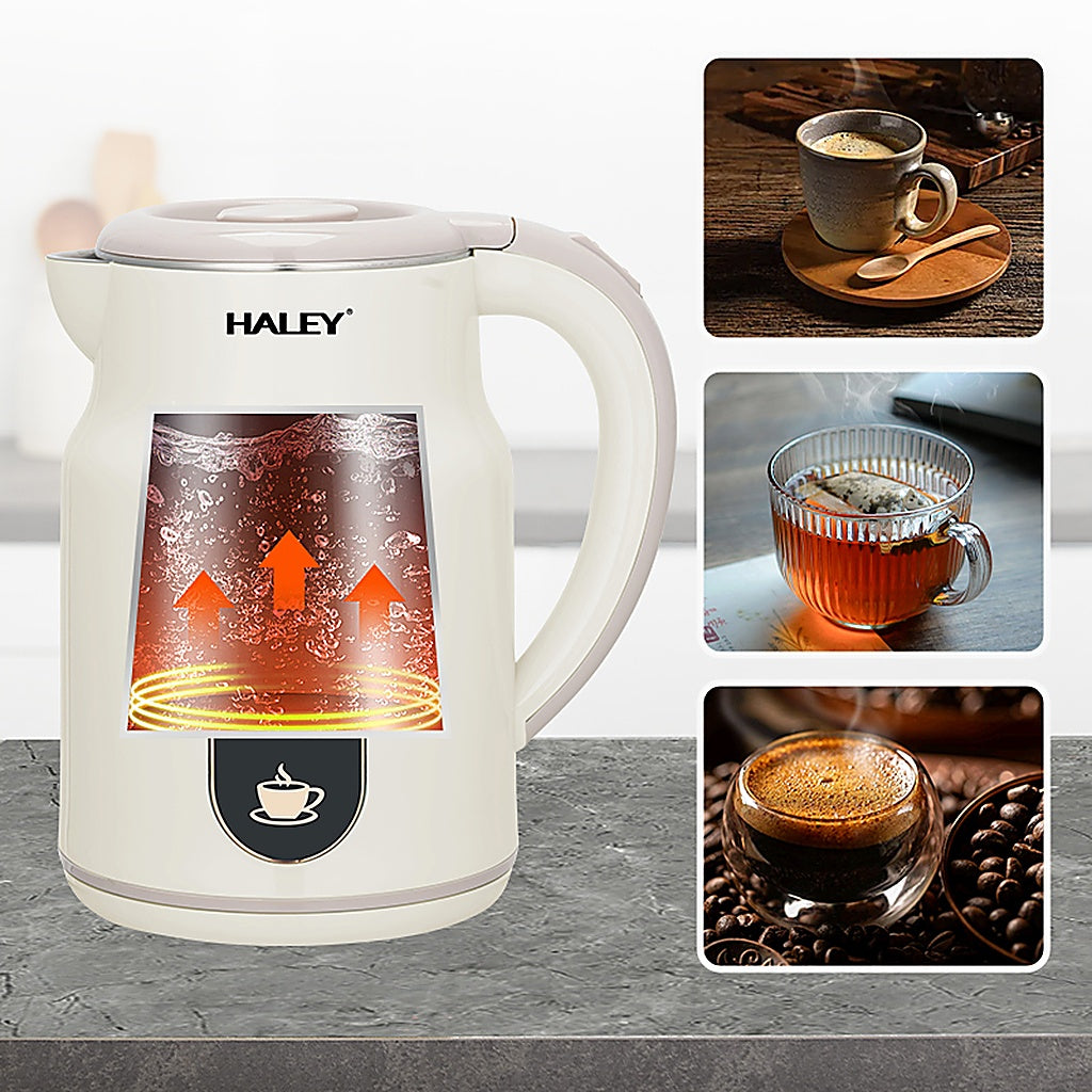 Bucură-te de apă fierbinte rapid și în siguranță cu fierbătorul electric HALEY HY-8977, ideal pentru prepararea ceaiului, cafelei sau altor băuturi calde. Cu o capacitate generoasă de 2.5 litri și o putere de 1500W, acest fierbător încălzește apa rapid, economisind timp și energie.