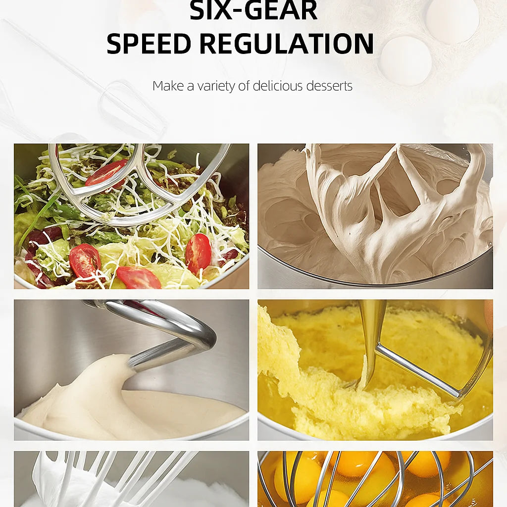 Transformă gătitul într-o plăcere cu mixerul planetar HALEY HY-2403, un ajutor de nădejde în orice bucătărie modernă. Cu un design elegant din inox și o capacitate generoasă de 7 litri, acest mixer este ideal pentru prepararea aluaturilor, cremelor, spumelor sau a compozițiilor pentru prăjituri și pâine.